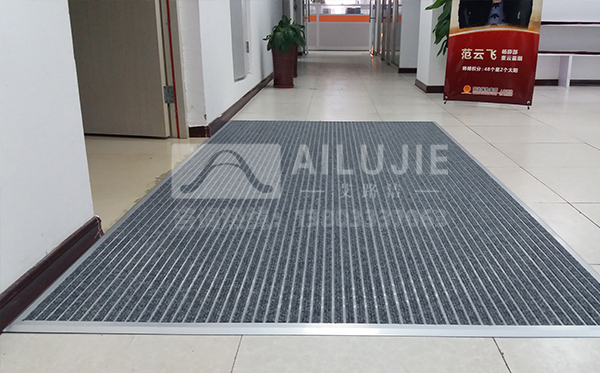 那么客户在选购铝合金地垫之前都需要做哪方面的了解?首先要了解铝合金地垫的产品分类和结构,常规铝合金地垫分井位式和平铺式两种产品结构。井位式地垫高度20mm,连接方式为钢丝绳链接,铝型材主架表面配进口比利shi毯面。产品特点除尘防滑,清洁安装方便,美观大方。由于铝合金地垫高度高于地面20mm所以安装之前需要在地面提前选好位置,测量好尺寸,预留出20mm的基础凹槽,将凹槽的四边及底部处理平整光滑,地垫制作好以后直接铺在凹槽内加装边条即可。这里预留凹槽特别注意的是,凹槽高度不能低于20mm而且四边尺寸统一,左右宽度尺寸平行相等,这样铺装出来的地垫才能合适美观,延长地垫的使用寿命。如果在旋转门铺设铝合金地垫,要特别注意旋转门的产品结构,有中轴和没有中轴的要区别对待,有中轴的旋转门需要在没有安装门之前,提前对圆弧凹槽,中轴直径和位置进行测量,为产品制作提供组装方案和挖孔尺寸。没有中轴门可根据凹槽的圆弧直径直接测量尺寸。非标准有误差的圆弧凹槽除测量尺寸模板采样,这样才能减少误差,防止地垫安装好以后缝隙过大影响美观。已经启用的楼宇大楼如果需要解决入口除尘防滑的问题,建议选用艾路洁平铺式铝合金地垫,毯面除尘吸水防滑地垫,或同样具备铝合金地垫款式和功能的艾路洁450型除尘防污地垫来解决地面控尘防滑问题,不用破拆地面,不用现场施工。