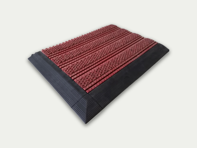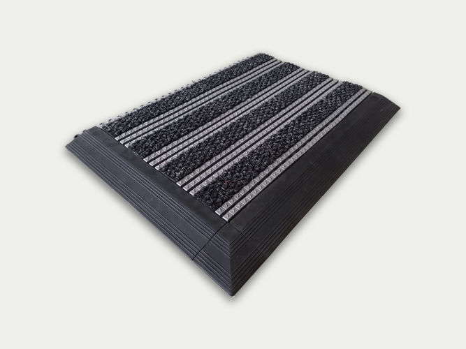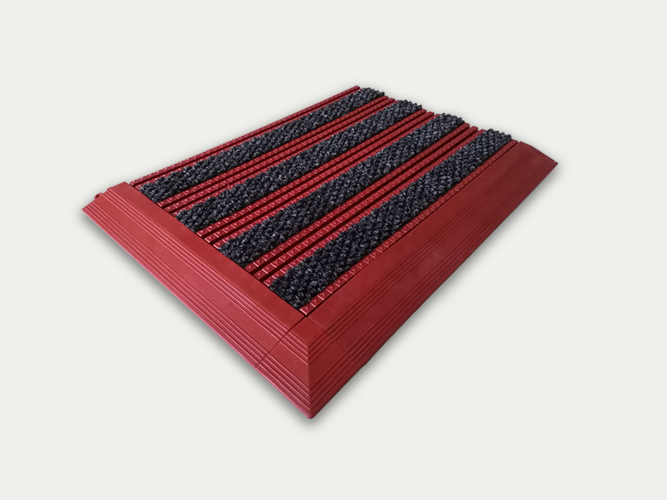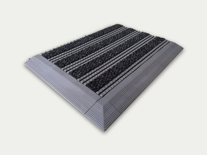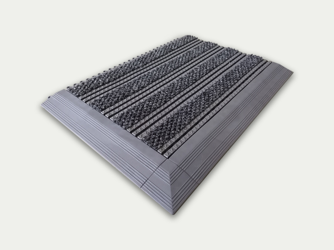 特点: 450型拼装除尘防污地垫,采用环保聚氯乙烯材料一次模具成型,星纹条状表面镶嵌高档菠萝纹耐磨毛毯,具有超强的刮沙、除泥、吸附水分的功效,更具备绝佳的防滑效果。